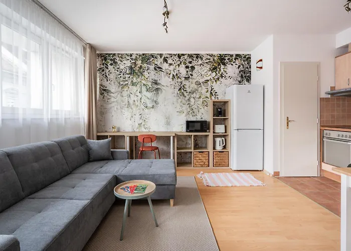 Apartament posiada wyposażoną kuchnię oraz jadalnię, w których goście mogą się zrelaksować i delektować posiłkami. Przystanek Arena Mall bevasarlokoezpont to kilka kroków od od apartamentu.